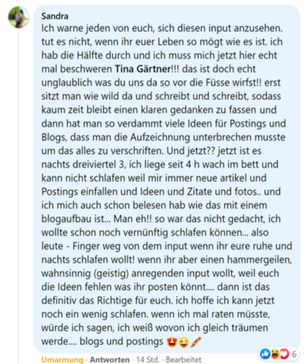 Du bekommst tolles Feedback – wenn jemand den Weg zu Dir gefunden hat.